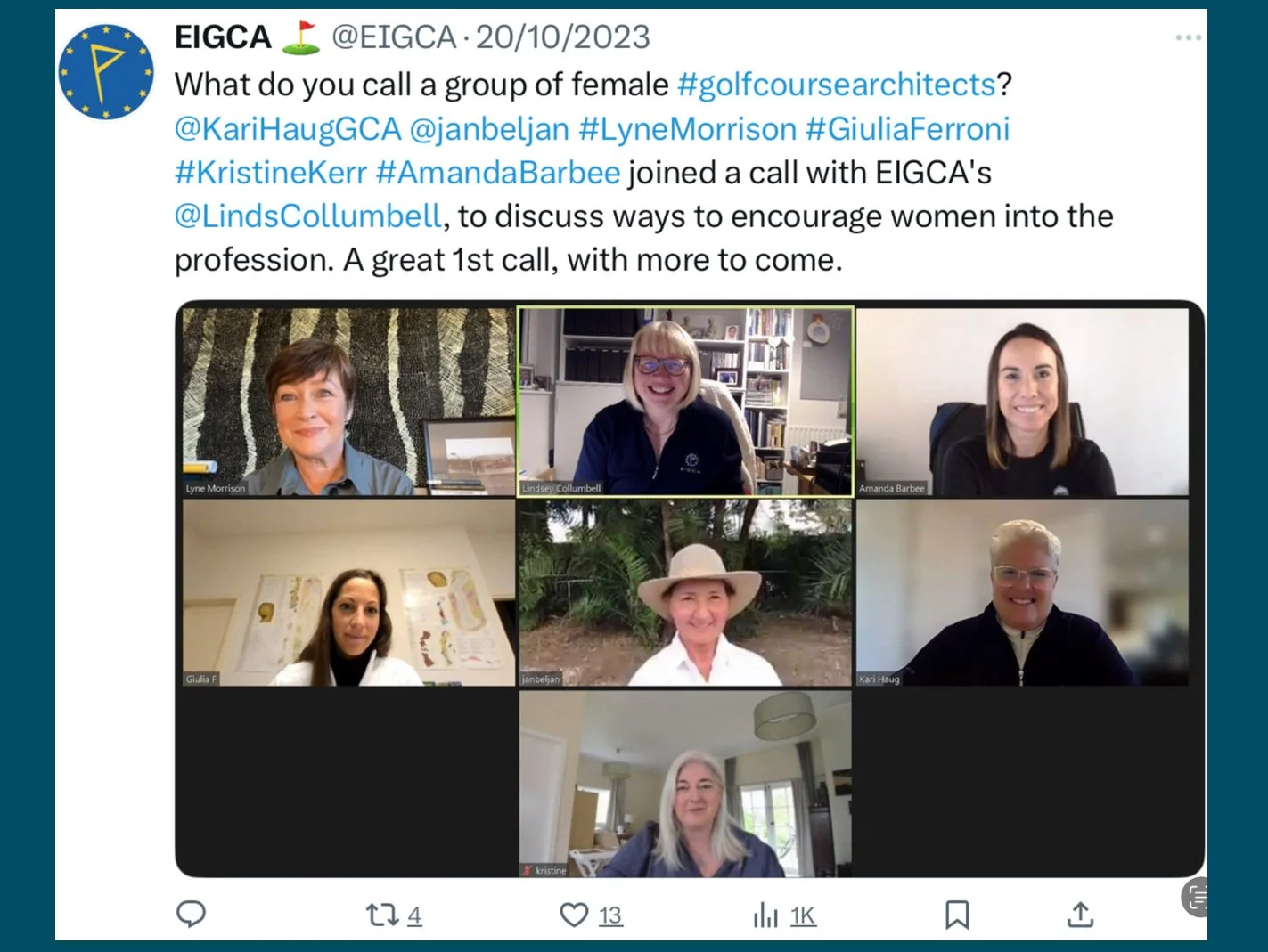 Historic virtual gathering of six of the world’s seven female golf course architects, organised by EIGCA to advance inclusive design principles globally.