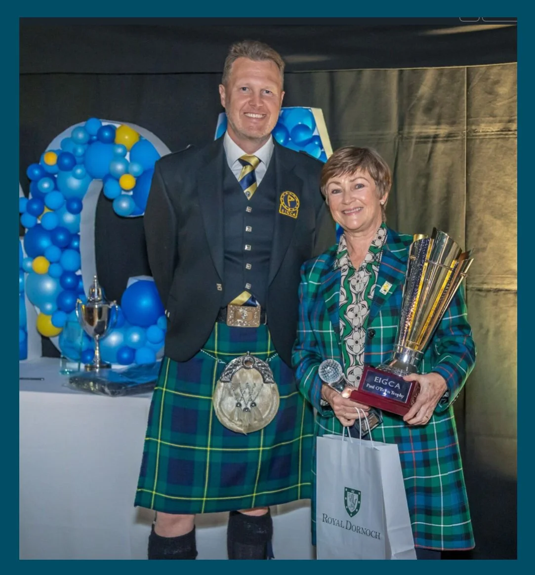 Winner of the EIGCA Paul O’Brien Trophy 2025, presented by Gary Johnston, President of the EIGCA, at Nairn and Royal Dornoch during the European Institute’s 25th Anniversary celebration.