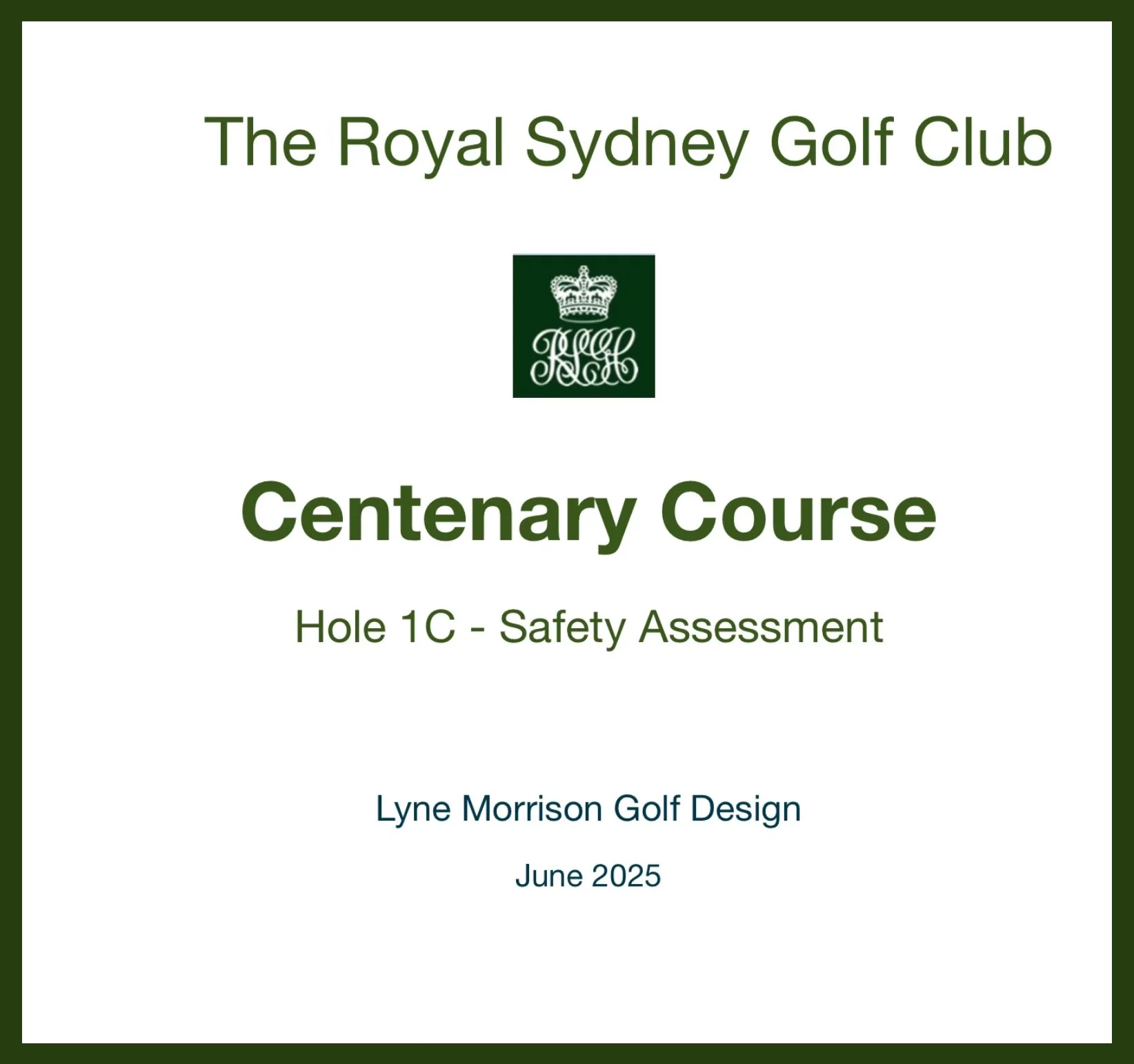 Safety assessment and strategic planning for Royal Sydney Golf Club’s historic Centenary Course - balancing heritage preservation with contemporary safety standards.